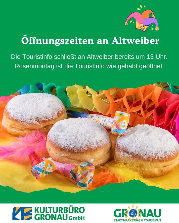 Öffnungszeiten der Touristinfo an Altweiber! 🥳 Die Touristinfo schließt am D…