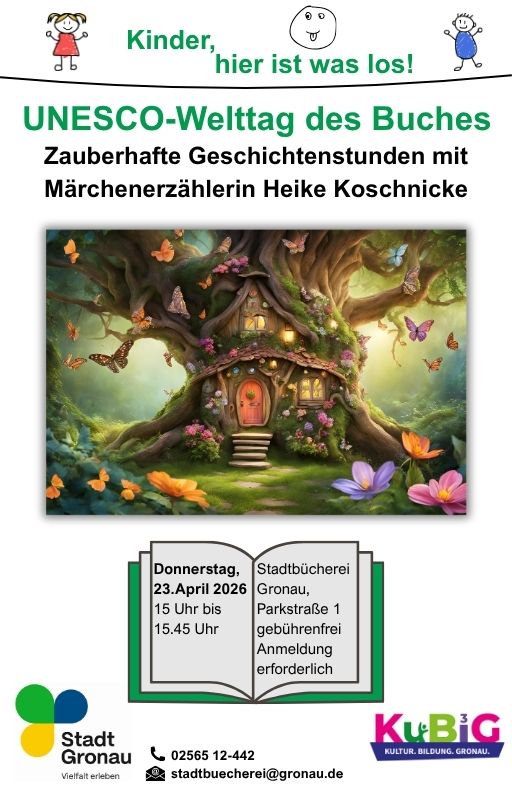 „Ich schenk‘ dir eine Geschichte“ – Leseförderung zum Mitnehmen: Auch im Jahr 2026 gibt es für Kinder der 4. und 5. Klassen kostenfrei das Welttag-Buch 2026, um bundesweit die Freude am Lesen zu wecken. Die Bücher liegen in der Stadtbücherei Gronau und der Bücherei Epe aus.
