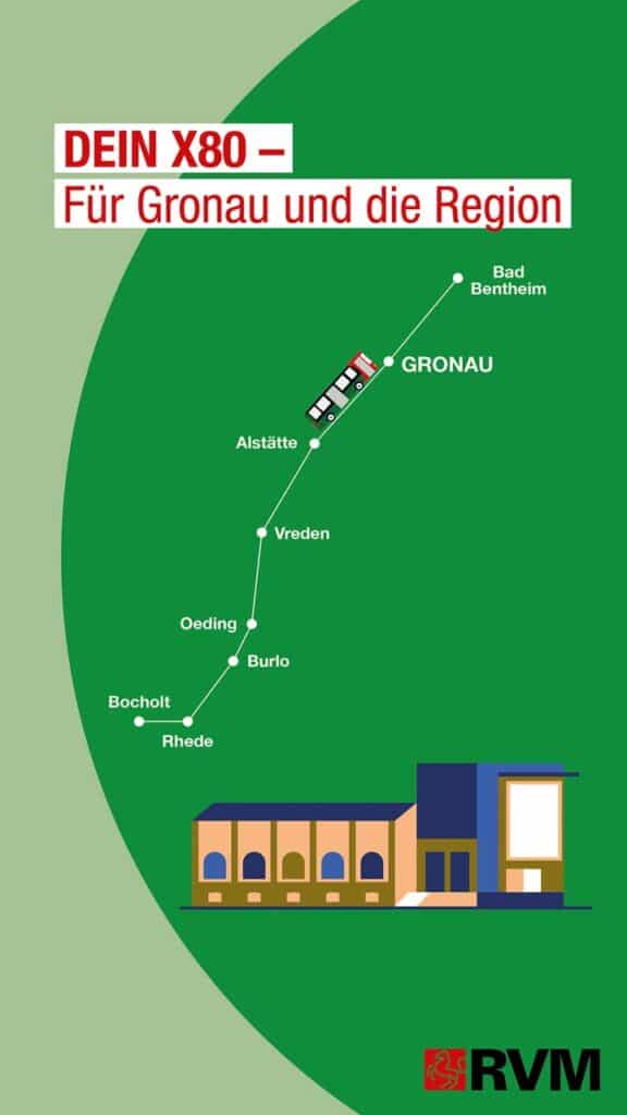 Aufgepasst: Aufgrund des Karnevalsumzugs wird der Gronauer Bahnhof am Sonntag vom Baumwollexpress X80 nicht angefahren. Eine Ersatzhaltestelle ist der Park & Ride Parkplatz nördlich des Bahnhofs an der Losserstraße. 😊