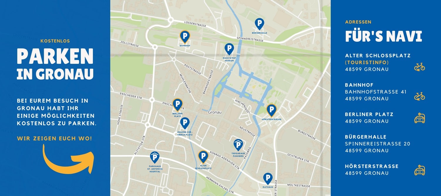 Ihr besucht das Stadtfestival Gronau mit dem Auto? Kein Problem! Hier findet ihr eine Übersicht der kostenlosen Parkmöglichkeiten in Gronau.🚗🅿️