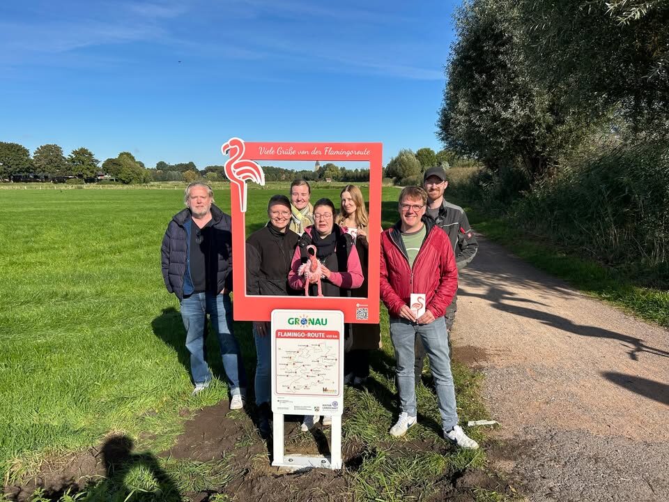 The photo point is the first of a total of four stations along the popular flamingo route. Cyclists can take a short break here, take a souvenir photo and take their own personal flamingo experience home with them. 🚴♀️✨