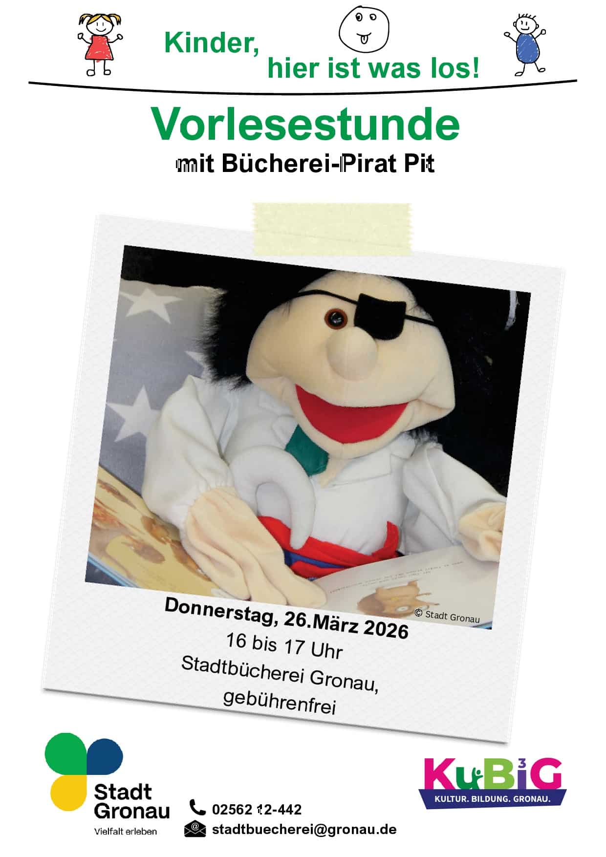 Ihr seid selbst Veranstalter in unserer Stadt? Dann meldet uns eure Veranstaltung mit Texten und Bildern per E-Mail an info@kb-gronau.de.