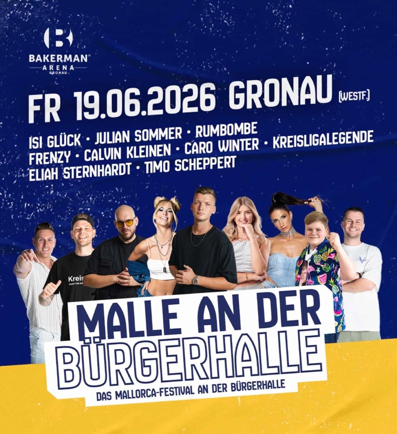 The Mallorca Festival in the Bakerman Arena at the BĂ¼rgerhalle is entering its second round! On Friday, June 19, 2026, the second edition of the Mallorca Festival "Malle an der […]