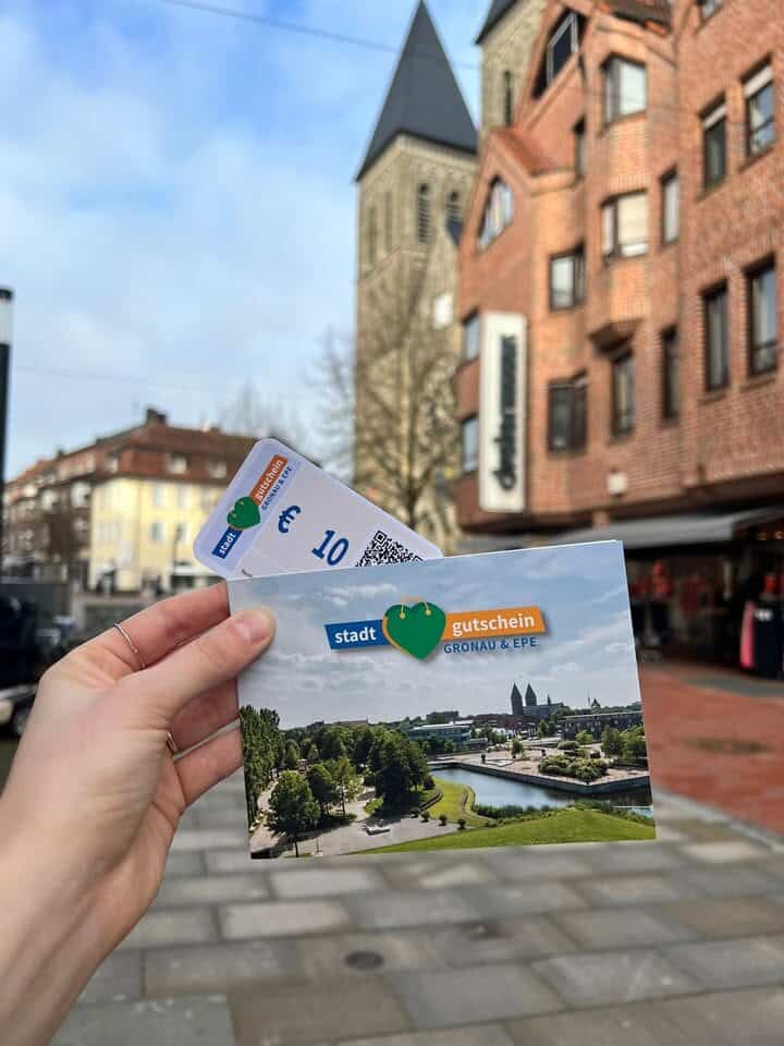 Die Touristinfo hat heute bereits geschlossen. Ihr bekommt die Gutschein noch online oder bei weiteren Verkaufsstellen: https://www.stadtgutschein-gronauepe.de/community/outlets
