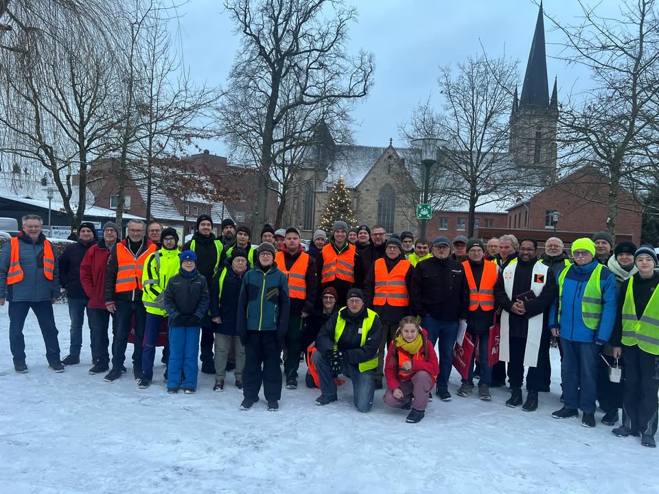 Nach der Einteilung und Verteilung der Touren an die rund 40 Helferinnen und Helfer mit ihren Sammelfahrzeugen sowie einem Gruppenfoto segnete Pastor Jestin Sam, Präses der Kolpingsfamilie Epe, nach einem gemeinsamen Gebet am Pfarrbüro die Helfer und ihre Fahrzeuge. Ausgerüstet mit Warnwesten sowie Orts- und Spenderlisten machten sich bei winterlichen Temperaturen – später ließ sich sogar die Sonne blicken – Jung und Alt auf den Weg durch Epe.