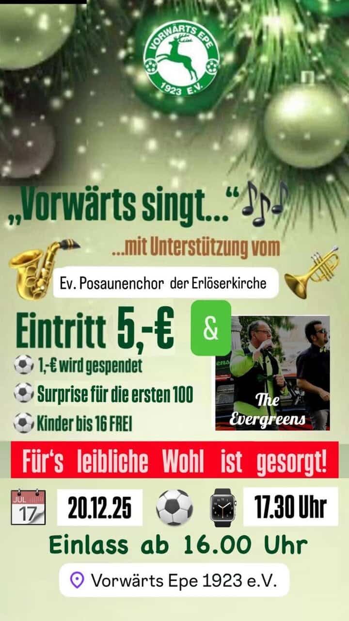 “VORWÄRTS zingt…”🎶 …. en omdat het zo leuk was, doen we het nog een keer! Vorwärts Epe nodigt u van harte uit voor de Christmas carol sing. Samen met u,