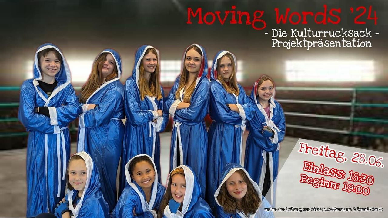 Im Rahmen vom Kulturrucksack gibt’s das Projekt “Moving words”. Am Freitag präsentieren die Jugendlichen im Musikclub Turbine das entstandene Ergebnis.😊