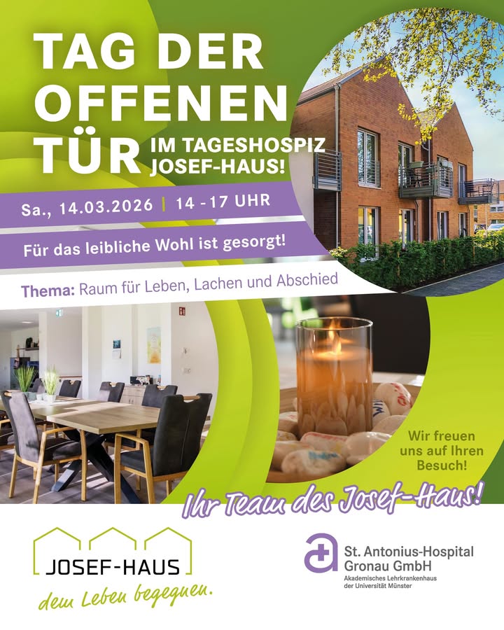 Unter dem Thema “Raum für Leben, Lachen und Abschied” lädt das Tageshospiz @josefhausev am 14. März zum Tag der offenen Tür ein! 😊